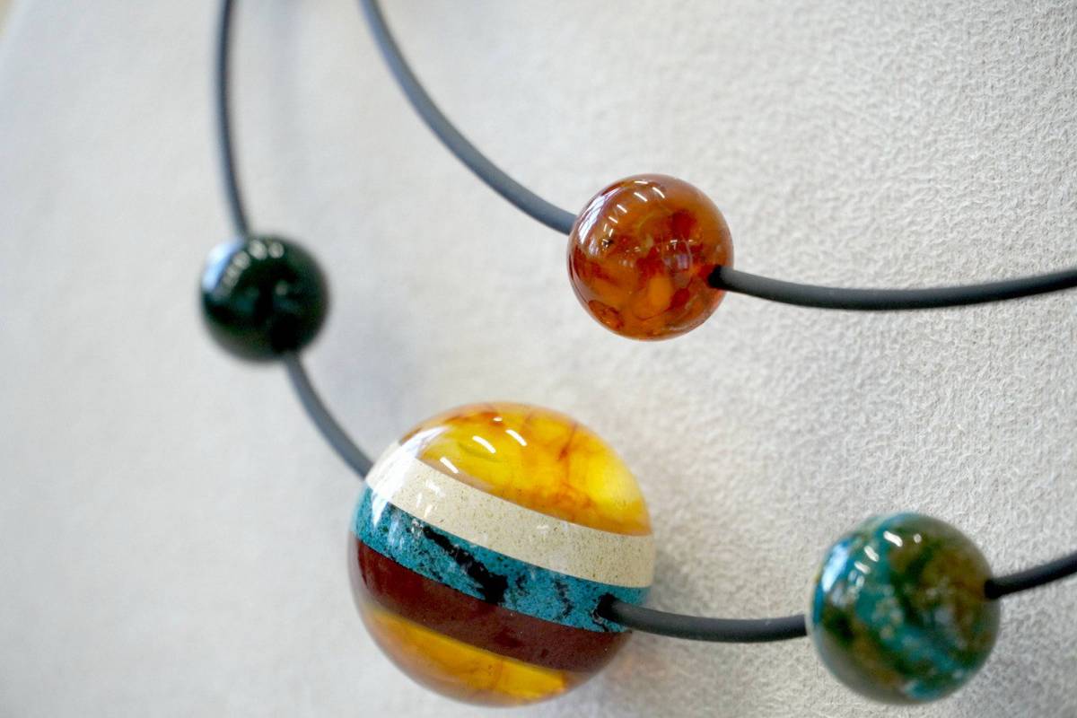 Ограниченная тематическая коллекция была выпущена в 2025 году ко Дню космонавтики. Два сета - «Земля» и «Солнечная система» - созданы с помощью солнечного камня, переработанного по специальной технологии. Метод с помощью определенной температуры и давления позволяет придать камню удобную для обработки форму и необходимую окраску, сохраняя природные свойства янтаря. При этом специалисты комбината разработали технологию, которая позволила смешать в одной янтарной заготовке сразу несколько цветов. Эксперимент с оттенками позволил изобразить рельеф, напоминающий океаны и материки с космической высоты.