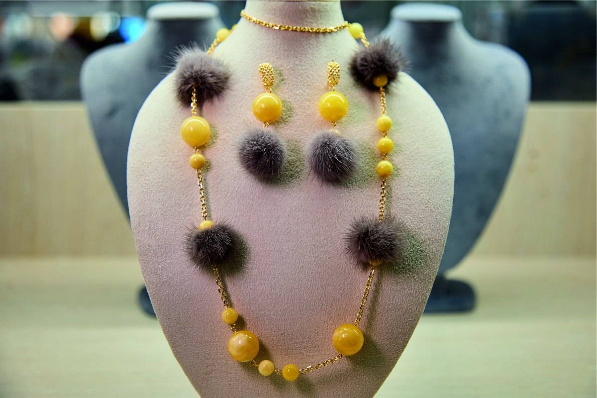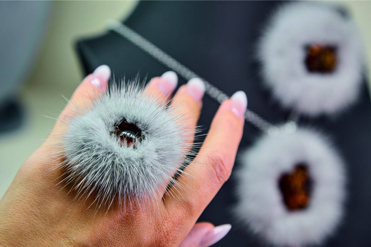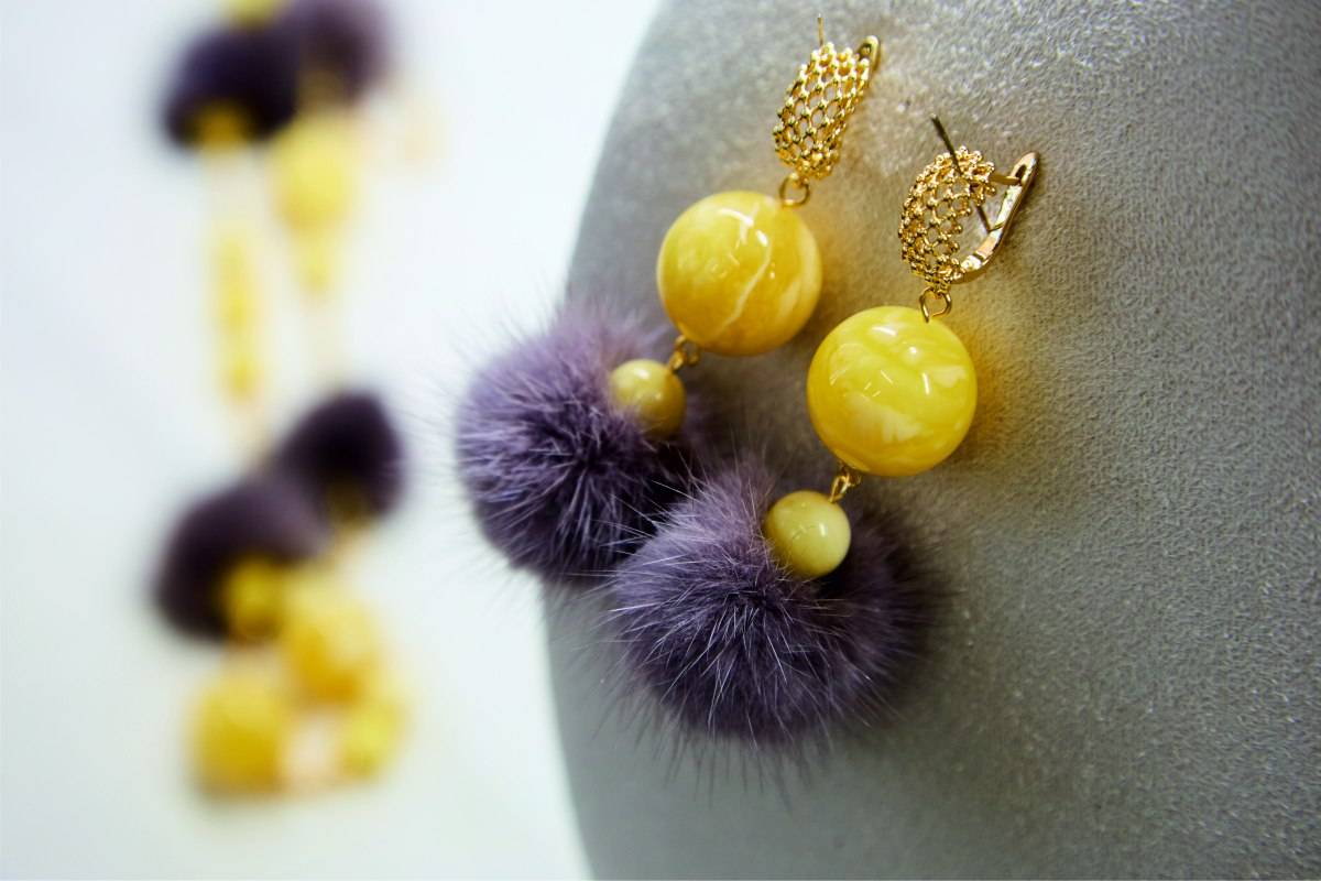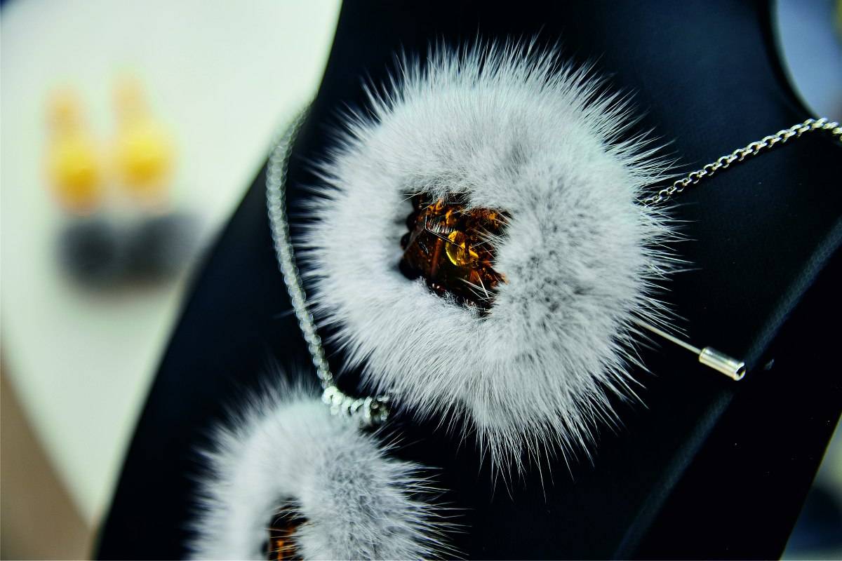 Впервые в украшениях используется натуральный мех норки. Сочетание легкого меха с глянцевым блеском и теплого янтаря делает серьги, колье, браслеты и броши воздушными и утонченными.